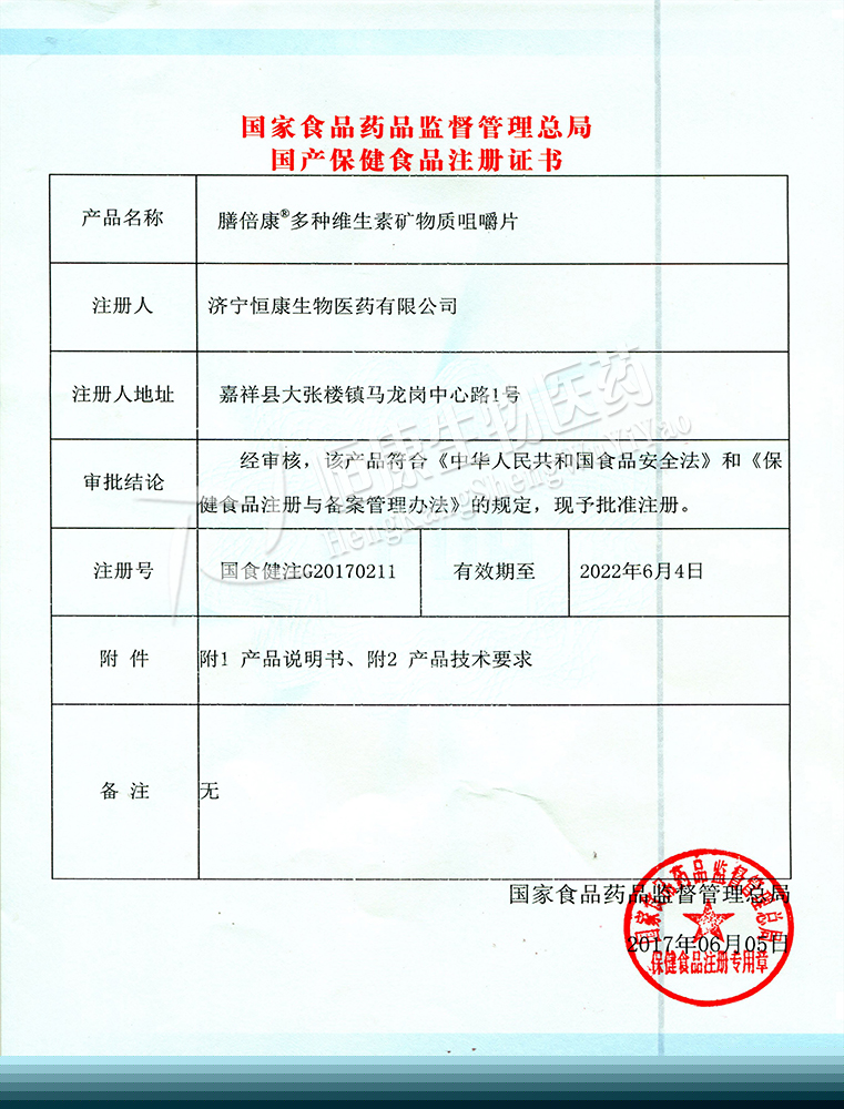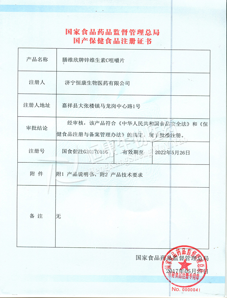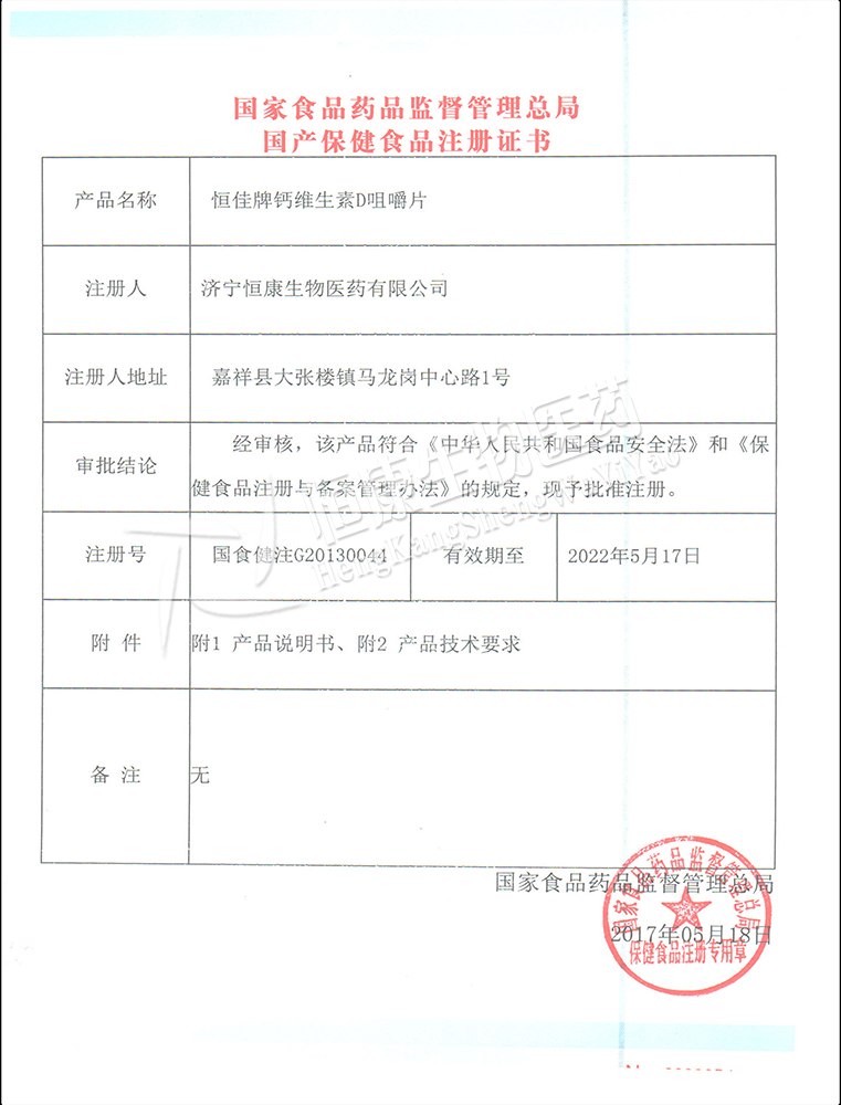 國(guó)家保健食品批準(zhǔn)證書(shū)