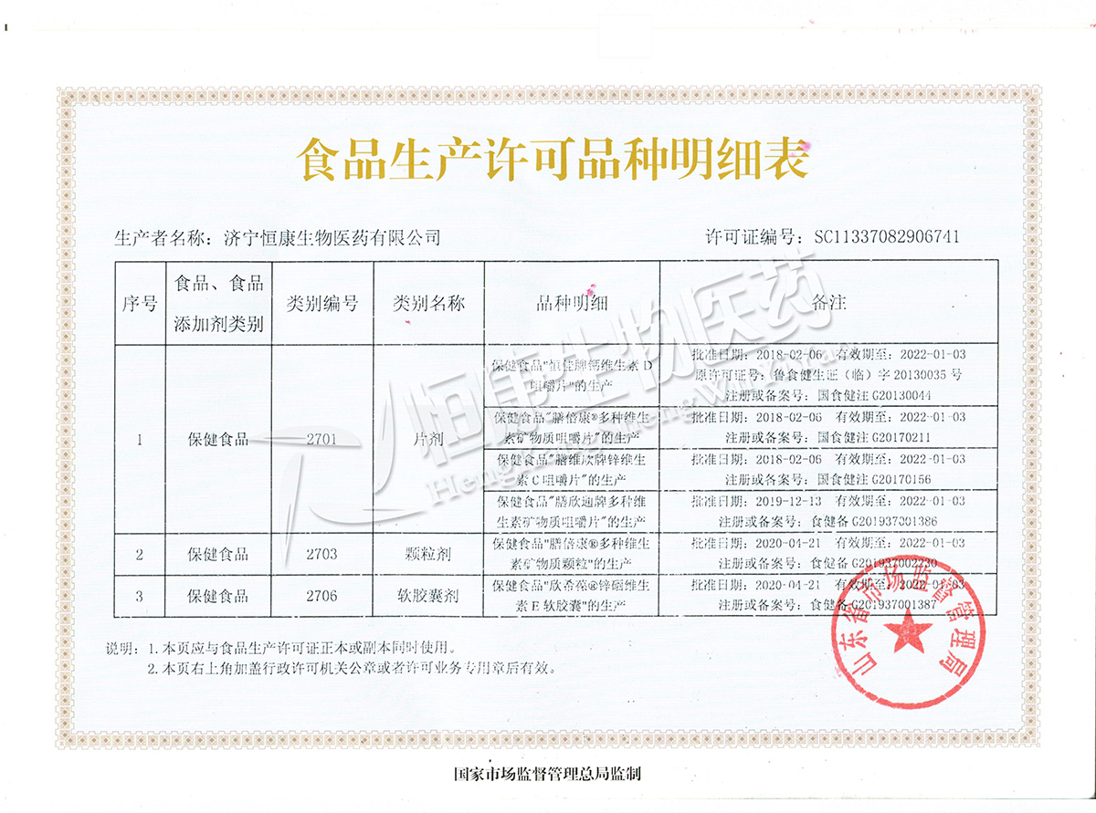 保健食品生產(chǎn)許可證