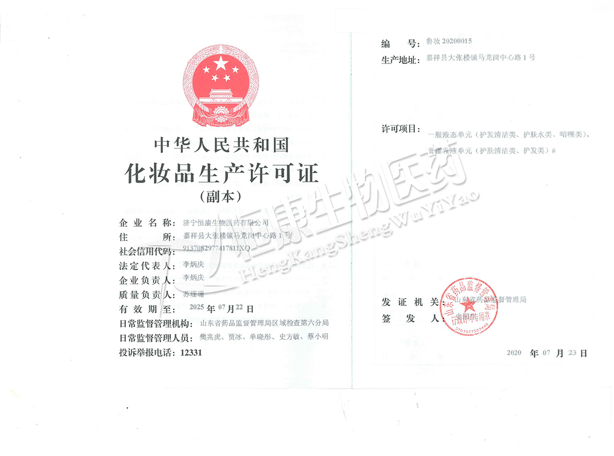 化妝品生產(chǎn)許可證